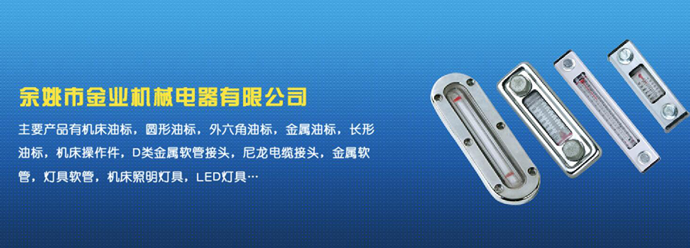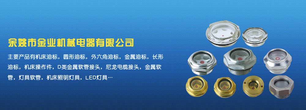 余姚市金業(yè)機(jī)械電器有限公司主要產(chǎn)品有機(jī)床油杯,圓形油標(biāo),外六角油標(biāo),金屬油標(biāo),長(zhǎng)形油標(biāo),機(jī)床操作件,D類金屬軟管接頭,尼龍電纜接頭,金屬軟管,燈具軟管,機(jī)床照明燈具,LED燈具,DGT型線路軟管防護(hù)套,TL型鋼制電纜手軌,電纜尼龍拖鏈,可調(diào)塑鋼冷卻管等產(chǎn)品,規(guī)格齊全,全部自制。望國(guó)內(nèi)外客戶前來考察:共同發(fā)展…